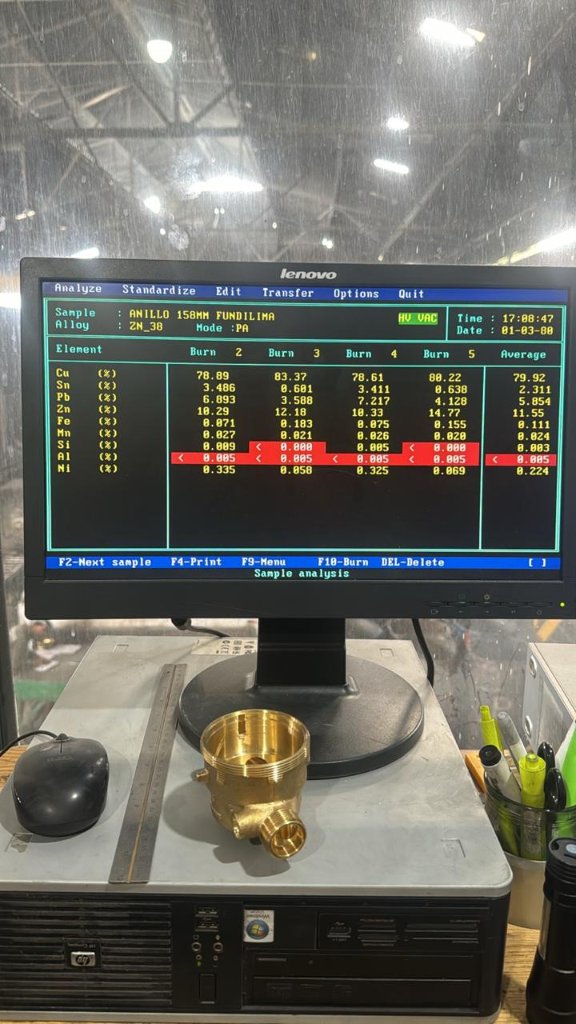 Control de calidad mediante análisis químico por espectrometría y ensayos de resistencia para certificar la composición y propiedades de cada aleación.
